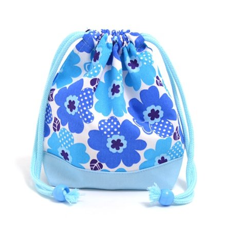 Drawstring Gokigen lunch (small size) with gusset bag cup Nordic Flower Blue Ox x light blue made in Japan N3568400 (japan import) Features: