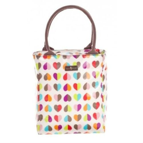 Womens tote bag with zipped main compartment and two carry handles. This bag is insulated to keep your lunch cool and fresh. Has a heart logo pattern.