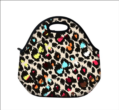 Buy Color Leopard Convenient fashion Dust-proof Neoprene multi-function Lunch Tote Bag by Go Gourmet with Zip & Handles Spots Girls Boys School Travel Picnic Lunch Tote Waterproof Carry Bag Box Organizer Cooler Warm Lunch box Handbag Soft Case