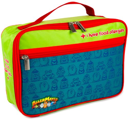 Hitting allergies where it counts - right in the lunchroom! Our insulated lunch totes are just the right amount of cool for kids with allergies who want to be safe and stylish. A colorful allergy info card featuring the AllerMates characters slides into a clear side pocket and helps identify your childs allergy in a fun and straightforward way. Important emergency info can be placed on the back of the card.• Zippered pocket and mesh pouch are perfect for storing utensils or napkins• Insulated Lunch Bag helps keep food fresh• BPA, lead and phthalates free• Handle allows for easy carrying• Heat treated 420D outer shell provides durability and water resistance• PE inner liner is food safe and easy to clean• Details: 7.5"H x 10"W x 3"D• Durable Zipper closures• Ages 3 years & up