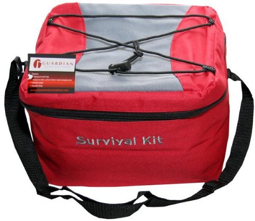 This waterproof cooler bag is made of high quality material unlike many cheap imitations. This red cooler bag is insulated and has the words "Survival Kit" on the front, an adjustable shoulder strap, tie-down cords on top, and a reflector stripe in the back.