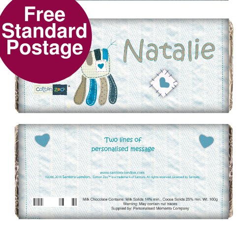 Buy Cheap Cotton Zoo Zipper the Zebra Chocolate Bar. This is a great product that can be personalised to your requirements ( please see main discription for full details ) Ideal gifts and presents for weddings, Christenings, Birthdays, Christmas etc...