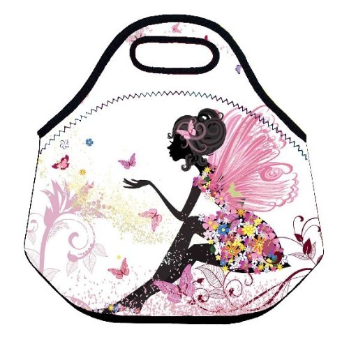 Buy Butterfly girl Insulated soft Neoprene multi-function Lunch Tote Bag by Go Gourmet with Zip & Handles Spots School Travel Picnic Lunch Tote Waterproof Carry Bag Box Organizer Cooler Warm Lunch box Handbag Soft Case