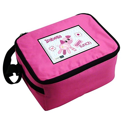 Send your kid's lunch to school in this funky bright pink Organdie the Piglet Cotton Zoo cool bag!Personalise this lunch bag with any first name up to 12 characters (please include the 's if required)This bag features an adjustable black shoulder strap which measures 122cm at the longest length and has a white wipe-able interior.