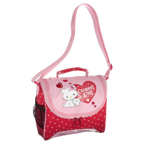 Snack bag Charmmy Kitty Red Screen printed and embroidered Upper and lining 100% polyester . One large compartment + pocket Handle strap + regulation Sun : 23 x 20 x 10 cm