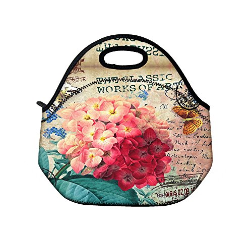 Flowers Design Convenient fashion universally Dust-proof Neoprene multi-function Lunch Tote Bag by Go Gourmet with Zip & Handles Spots Girls Boys School Travel Picnic Lunch Tote Waterproof Carry Bag Box Organizer Cooler Warm Lunch box Handbag Soft Case Features: