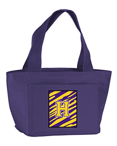 Features. Lunch Bag or Doggie Cooler Bag. 600 denier polyesterpvc. Zippered main compartment. Color matched handles and zipper. Aluminum foil insulated interior. Six pack or great lunch cooler. Front pocket. Gusseted bottom. Tiger Stripe. Color - Purple Gold. Design - Letter H Monogram. Dimension - 15 x 4 x 7 in.. Item Weight - 1 lbs.