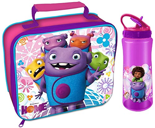 Home is the upcoming computer-animated movie produced by DreamWorks about an adventurous girl and a lovable misfit from another planet. This is the brand new, 100% official Lunch Bag and matching Flip 'n' Flow Bottle to accompany the movie release. The Lunch Bag is fully insulated to keep food tasting cool and fresh for longer and has a PVC-free, food safe lining inside that's easy to wipe clean after use. It also has a zip closure all the way around that allows the lid to fully open to access the contents, a name tag pocket and a carry handle on top. The matching super-cool bottle will keep her hydrated throughout the day. Made from durable BPA-free plastic, it features an easy grip design and a trendy sport-style lid with a flip up/down durable plastic spout that's comfortable to drink from.