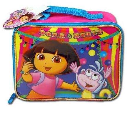 Product Features This Dora the explorer lunchbox kit features zippered compartment. Easy carrying handle on top. Bright vivid colors that kids love. Dimensions: 9.75" x 7.50" x 3.50"